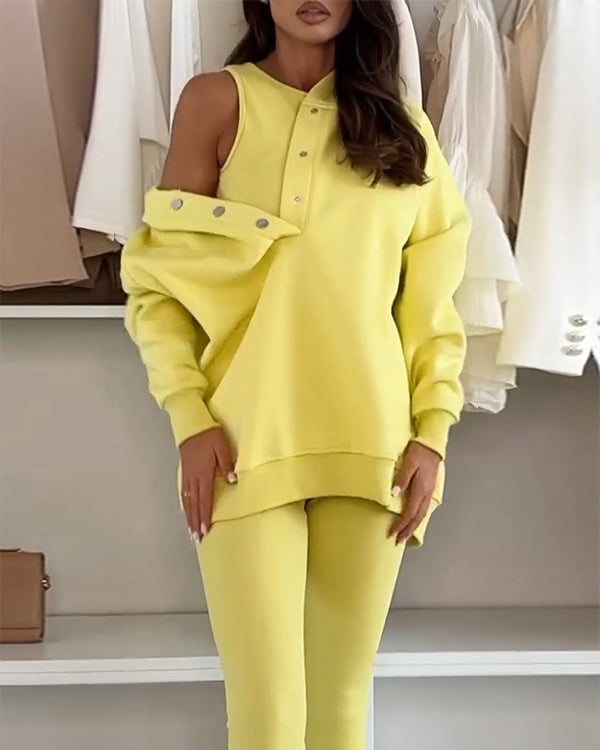 Clidress Irregular Top & Wide Leg Pants Set