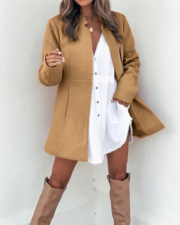 Details Style: Elegant Pattern Type: Plain Details: Pocket, Open Front Neckline: Notched Stand Collar Sleeve Length: Long Sleeve Sleeve Type: Regular Sleeve Fit Type: Slim Fit Material: Polyester SIZE US/CAN LENGTH SLEEVE SHOULDER BUST S 4-6 31.52“ 23.25“ 15.76“ 35.46“...