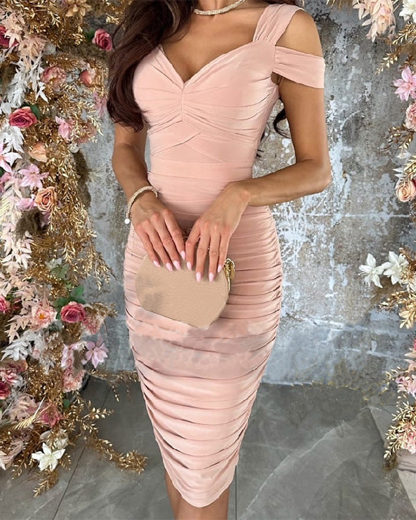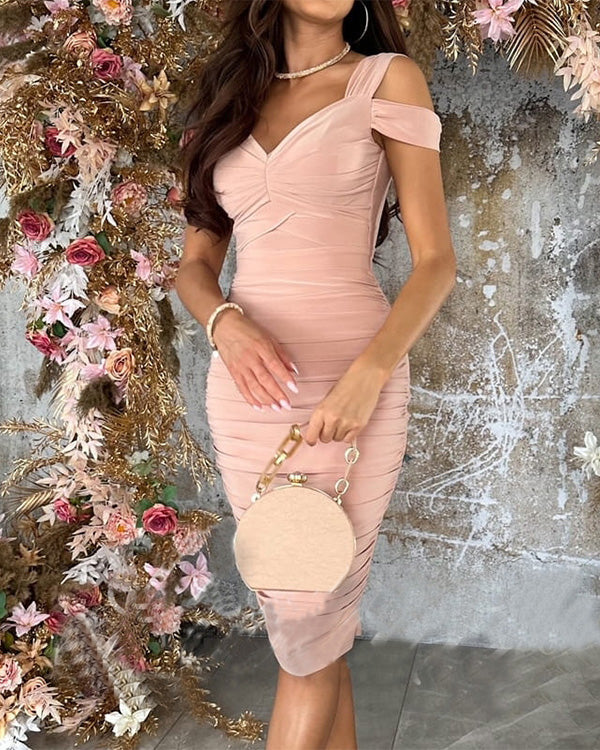 Detials Length: Knee-Length Material: Polyester Sleeve Type: Cold Shoulder Neckline: Sweetheart Neck Back Zipper Style: Party Wear Fit Style: Slim Fit Size(inch) Bust Waist Hips S 34.65 26.77 36.22 M 36.22 28.35 37.8 L 37.8 29.92 39.37 XL 39.37 31.5...