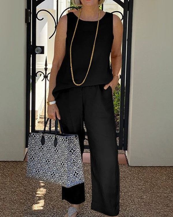Clidress Cotton Sleeveless Top &Pants 2 Pieces Set