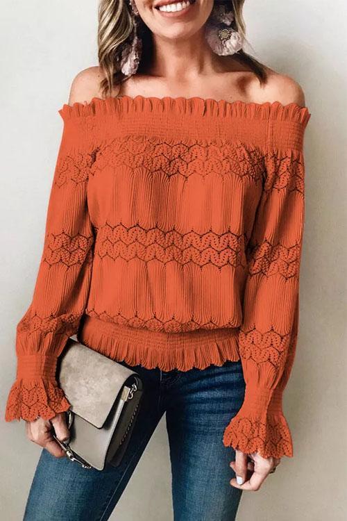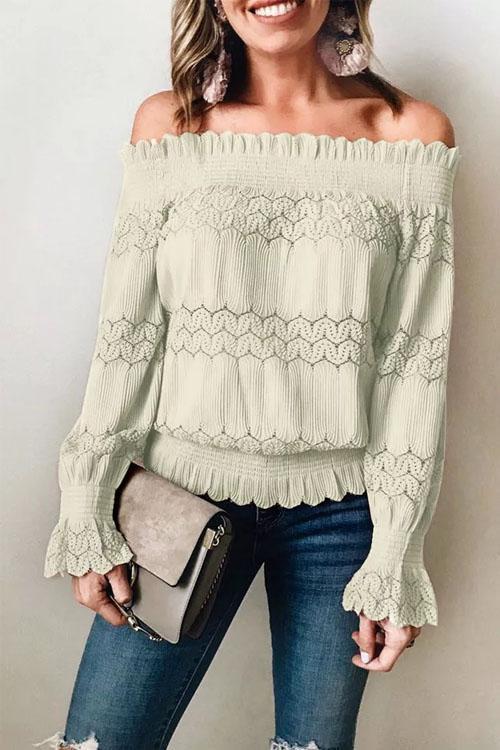 Details: Material:?Lace Spandex Style: Daily Pattern Type: Solid Hollow-out Sleeve Style: Regular sleeve Sleeve Length: Long Sleeve Neckline: Bateau Neck SIZE(IN) Sleeve Length Bust Top Length S 23.2 43.7 22.2 M 24.0 45.3 23.0 L 24.8 46.9 23.8 XL 25.6...