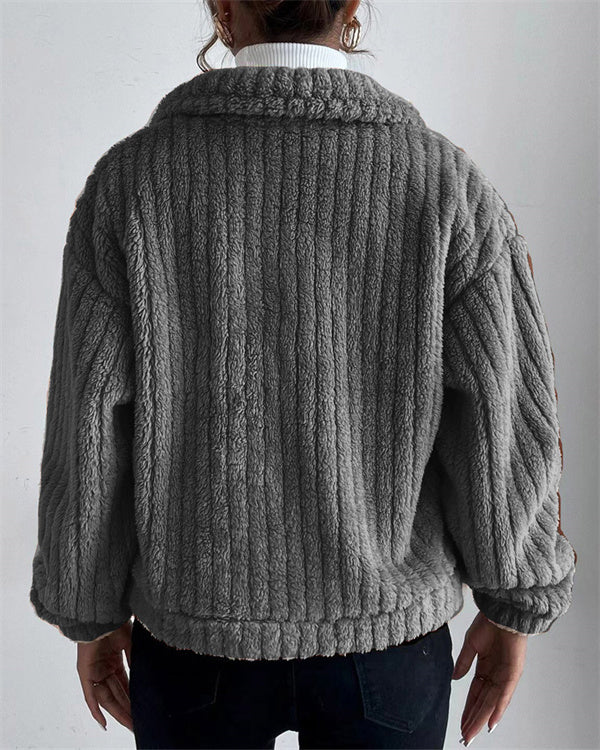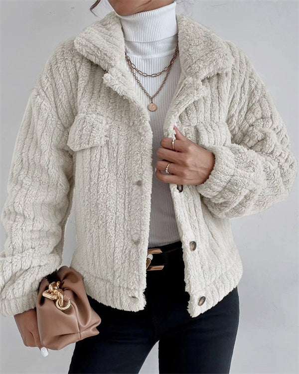 Clidress Lapel Button Velvet Jacket Coat