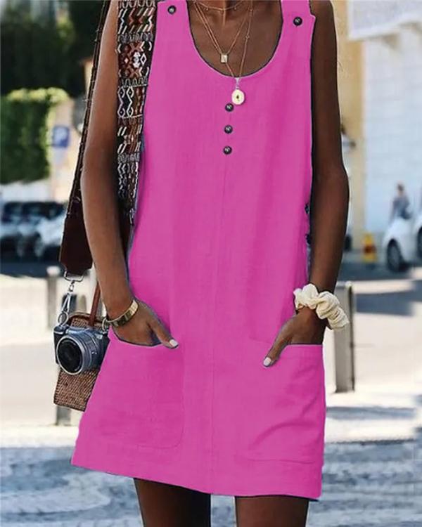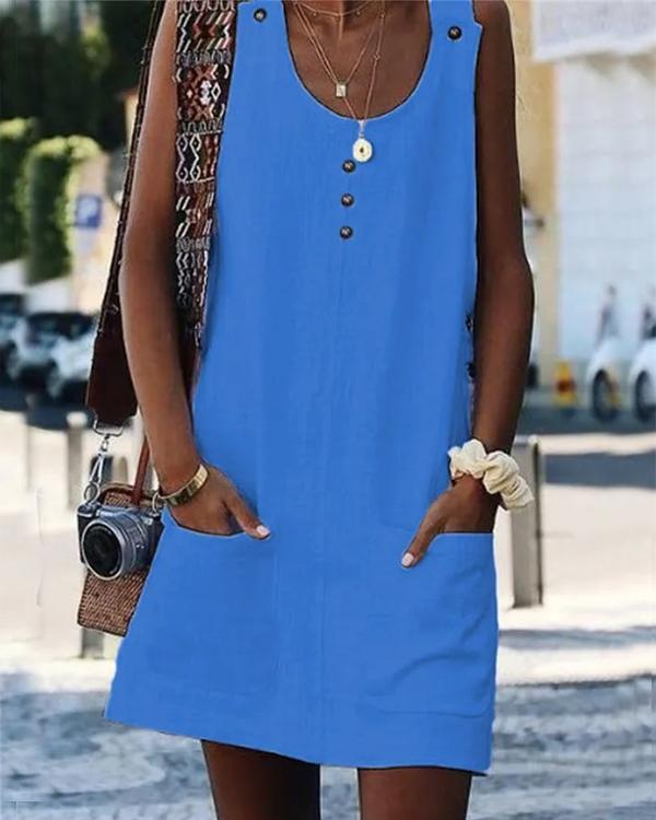 Clidress Linen Button Pocket Mini Dress