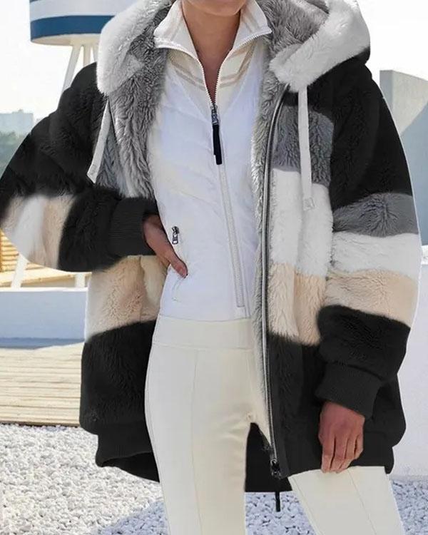 Clidress Thick Plush Plaid Worm Hoodie Coat