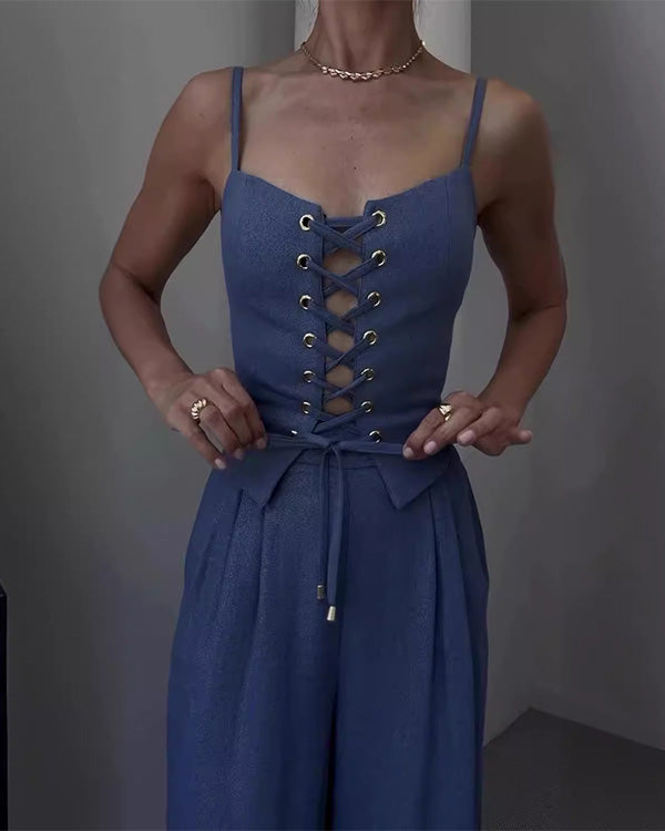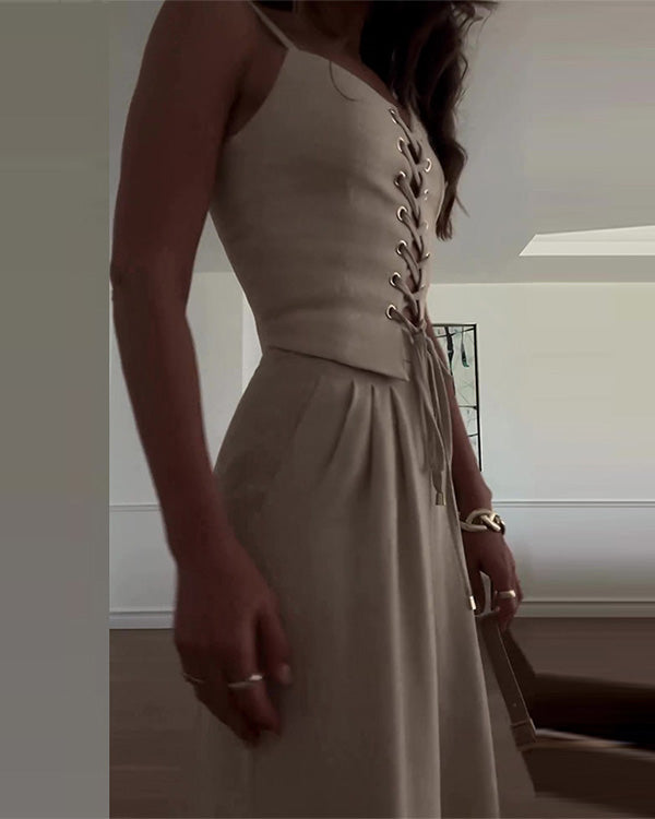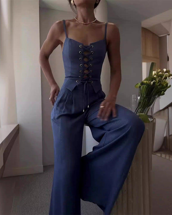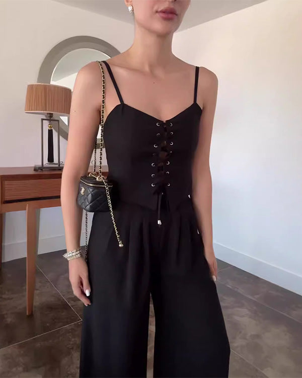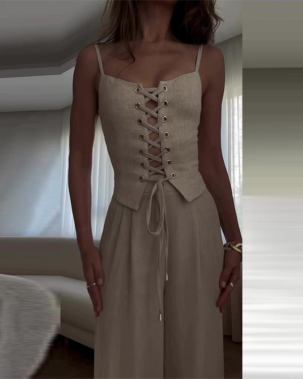 Clidress Slip Tie Crop Top & Wide Leg Pants Set